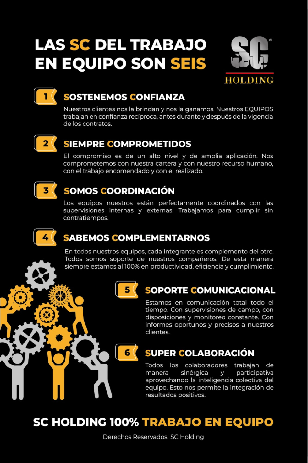 SC Holding es una empresa con un grupo de profesionales en el campo de venta, mercadeo, atención al cliente y activación de eventos, brindamos servicios de mercaderismo, impulsación, consultoría y desarrollo de ventas, asi como activaciones empresariales y de marca.